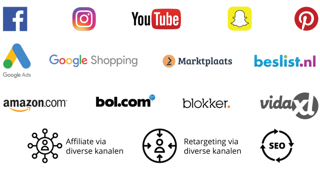 Ken de markt en ken je branche. Daar begint het mee! Door jarenlange ervaringen in zeer diverse markten weten we inmiddels wat werkt. Zo kunnen we de beste marketing mix toepassen zonder overtollige uren te besteden aan kanalen die zich uiteindelijk niet terug gaan betalen. Uit welke marketing kanalen we een selectie maken voor jouw webshop? Dit hebben we hieronder voor je op een rijtje gezet: